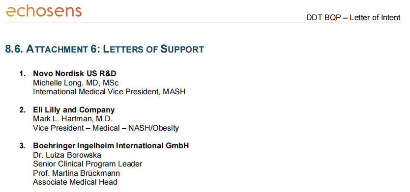 FDA此次对意向书的认可具有里程碑意义,标志着VCTE成为全球首个且目前唯一获得FDA官方认可、进入MASH药物研发工具资格认证流程的无创检测技术。这一决定主要基于FibroScan®在肝脏疾病药物开发(尤其是MASH领域)中卓越的临床验证与实际应用表现。FibroScan®获得了超过5600篇同行评议论文的有力支持,其中包括多项关键研究((Gawrieh et al., Journal of Hepatology, 2024, Lin et al., JAMA, 2024, and Mózes et al., Lancet Gastroenterol Hepatol, 2023),这些研究一致表明VCTE测量的LSM变化与肝脏相关临床结局具有显著相关性。在Echosens提交至FDA的申请材料中,还包括了礼来、勃林格殷格翰和诺和诺德等国际领先药企的官方支持函,进一步巩固了其行业权威性与认可度。